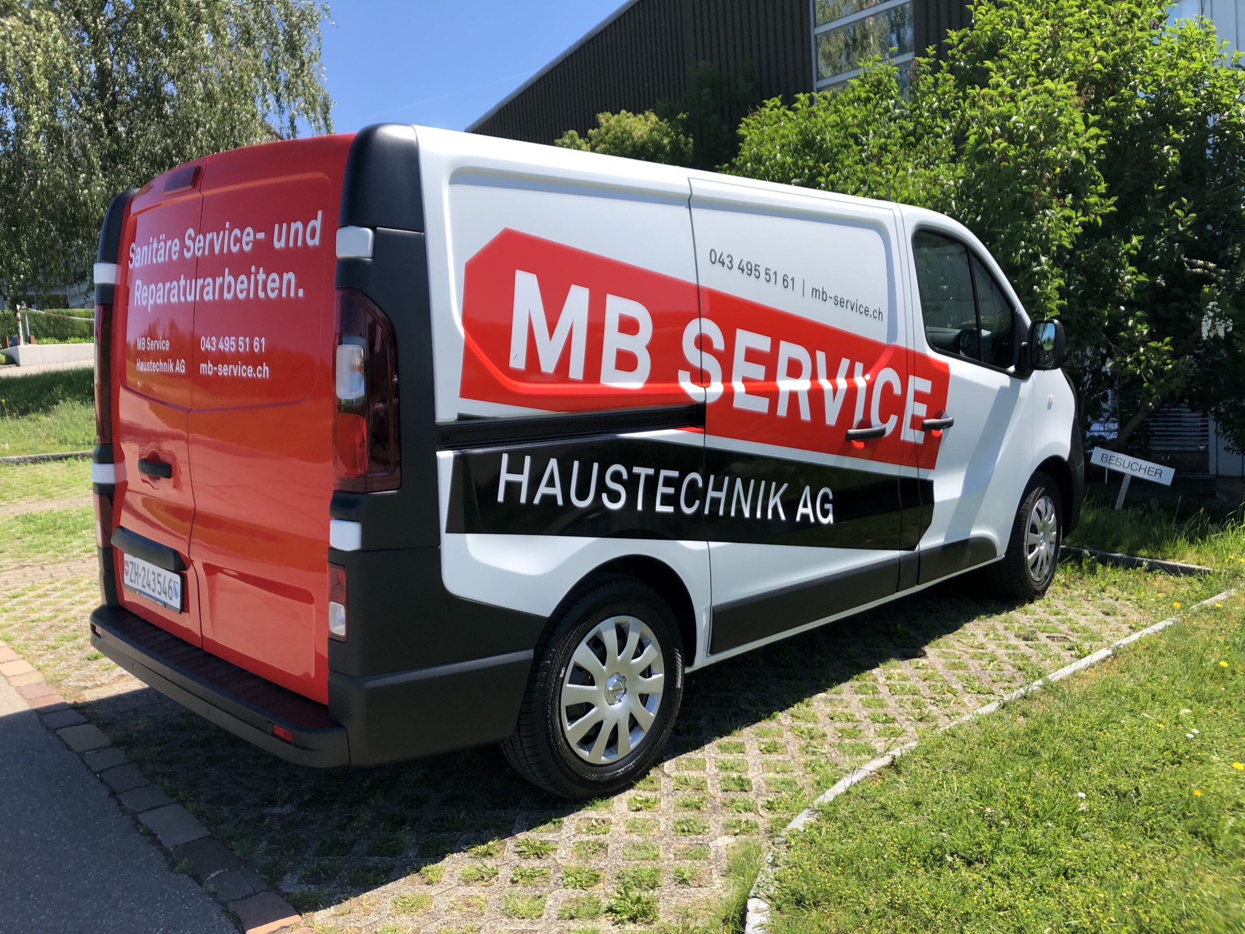 Dr.Aufkleber mit unserem Werbetechnik Team in Aktion. Das Resultat lässt sich zeigen. Die Fahrzeug-Flotte von MB Service Haustechnik ist wieder flott unterwegs …und was hat man davon?